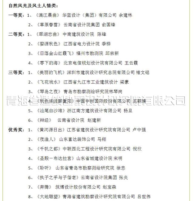 由中國(guó)勘察設(shè)計(jì)協(xié)會(huì)主辦,《中國(guó)勘察設(shè)計(jì)》雜志社承辦的首屆全國(guó)勘察設(shè)計(jì)行業(yè)攝影大賽歷時(shí)4個(gè)月,于2015年7月20日?qǐng)A滿結(jié)束,本次大賽共收到91個(gè)單位501人2348幅參賽作品。經(jīng)過(guò)評(píng)審委員會(huì)兩輪評(píng)審,共評(píng)選出60個(gè)等級(jí)獎(jiǎng),20個(gè)優(yōu)秀獎(jiǎng),22個(gè)優(yōu)秀組織獎(jiǎng)。