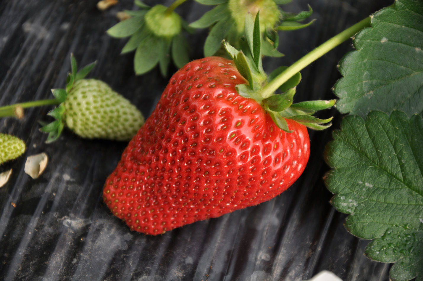 一筐筐鮮紅紅、無污染,還略帶露水的草莓終于被勤勞的雙手從溫棚內(nèi)“解放”了出來,過秤,結(jié)錢。我們帶著勝利的果實(shí),又在另幾個(gè)溫棚收獲了蘑菇、菜瓜等青菜。